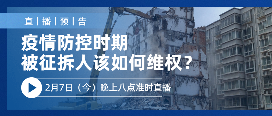 近日,由新型冠状病毒感染的肺炎席卷全国。疫情防控时期,全国实行交通管制。在这个特殊时期,德凯律师团充分考虑广大被征收人的需求,现将一周一次的直播时间更改为每天一次,每晚20:00准时开播。