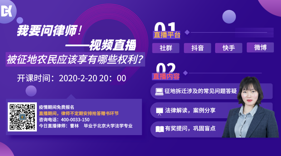 疫情防控特殊时期,德凯律师团充分考虑广大被征收人的诉求,现将一周一次的直播时间更改为(工作日)每天一次。即问即答。在答疑中充实法律知识。避免在征地拆迁过程中吃了闷亏! 1、今日直播律师:曹林 北京大学法学专业毕业 2、 直播主题:2020年新《土地管