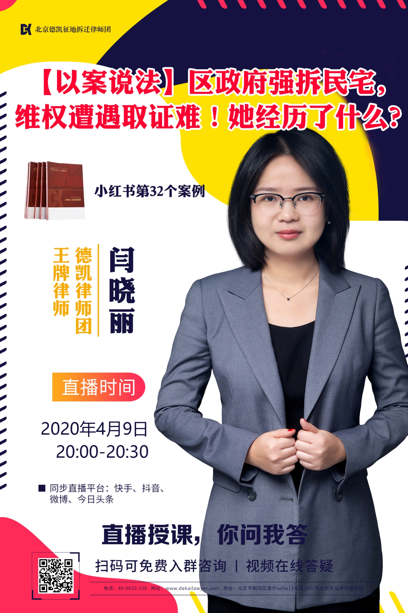 闫晓丽律师将会给大家讲解《拆迁维权宝典——小红书》第32个案例。类似的案件会给广大被征拆人带来哪些维权启示呢?(小红书案例均由德凯律师团承办)今晚20:00,请带上您的小红书翻开至第60页,我们直播间内不见不散!