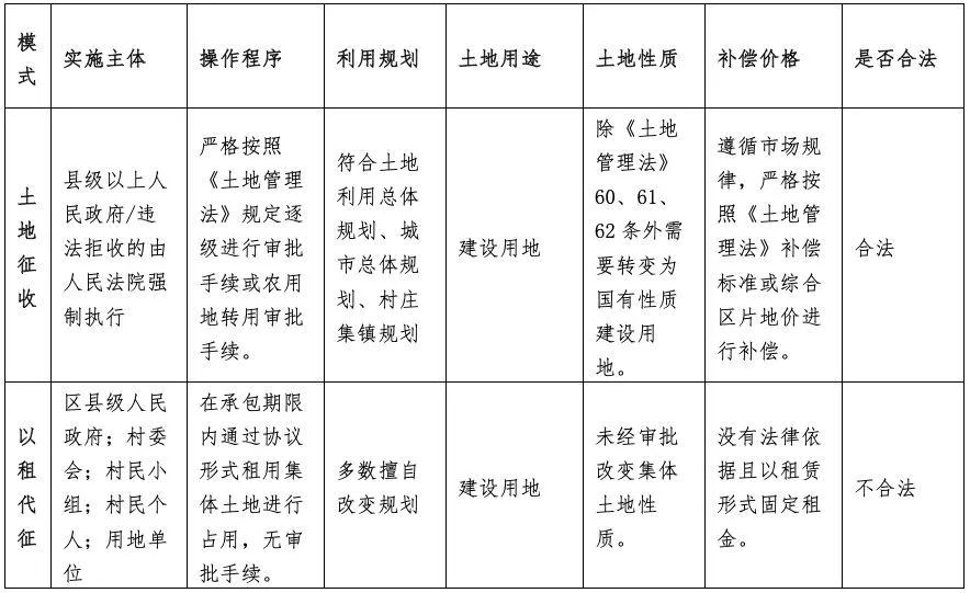 同时,在某些发达地区的城市棚户区等地也大肆盛行政府牵头的“腾退”和“村民自治”的方式进行征收行为,该种行为同样没有法律依据做支撑,而是一味追求高效便捷。当然有些地方也在试点创新符合《土地管理法》的征收模式,比如之前试点的南京地区“综合区片地价”征地补偿模式将在最新修订实施的《土地管理法》中得以明确。广东等地区也在试点的“留地安置”政策,即地方政府征地时,除了给予村民和村集体货币补偿外,按照征地面积一定比例返还给村庄建设用地,用于安置被征地农民,来保障农民继续享有土地价值带来的增值。