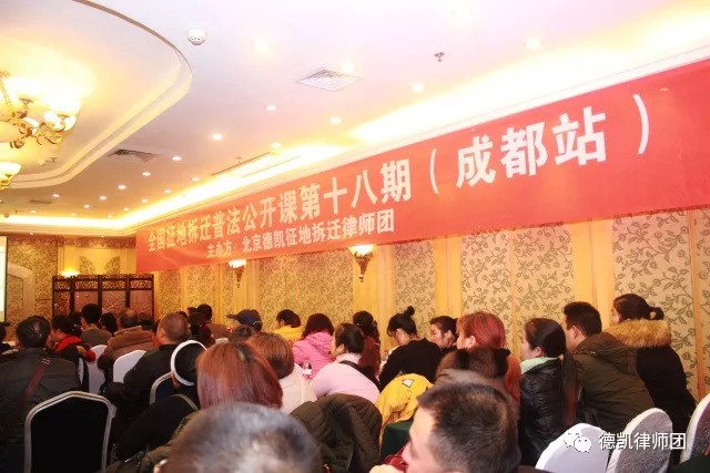 2017年最后一场征地拆迁普法公开课在成都圆满落幕,全国各地八十余人到场听课,同时线下进行同一主题直播,与现场被拆迁户共同聆听这场暖意盎然的公开课。本次授课内容干货多多,为老百姓解决征地拆迁问题提供了建设性的意见和可操作的维权方案。