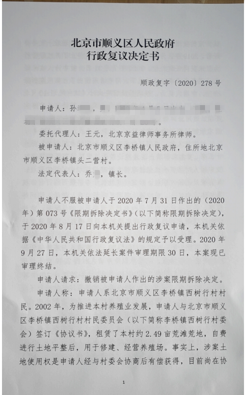 2020年7月31日,孙先生收到了限期拆除决定书后,认为该决定严重损害自身权益,遂委托德凯律师团进行维权。