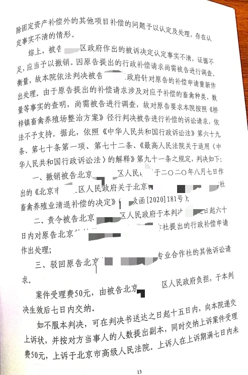 我们认为,根据《养殖场整治方案》要求,养殖户清退补偿的范围应当包括四部分,即养殖动物销售补偿、固定资产补偿、土地租金补偿、停产停业补偿。区政府仅对养殖动物的补偿数量作出了认定,并未对养殖场是否应当获得除固定资产补偿外的其他项目补偿的问题予以认定及处理,且对动物补偿数量认定上并没有调查核实,也没有听取养殖场的相关陈述申辩意见,其认定事实不清,证据不足,我们依法提起了诉讼。