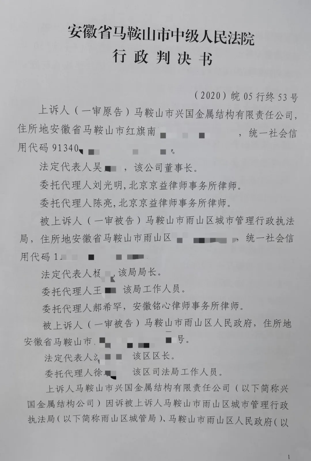 兴国金属结构公司认为,雨山区城管局作出的限拆决定书违反法律规定。雨山区政府作出的行政复议决定未予全面审查,侵犯了其合法权益。