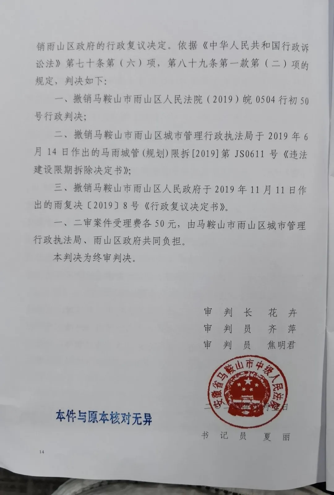 【胜诉公告】撤销执法局限拆通知,撤销区政府复议决定