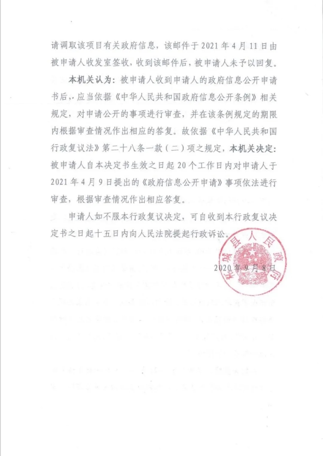 【胜诉公告】不答复政府信息,确认违法加责令公开!