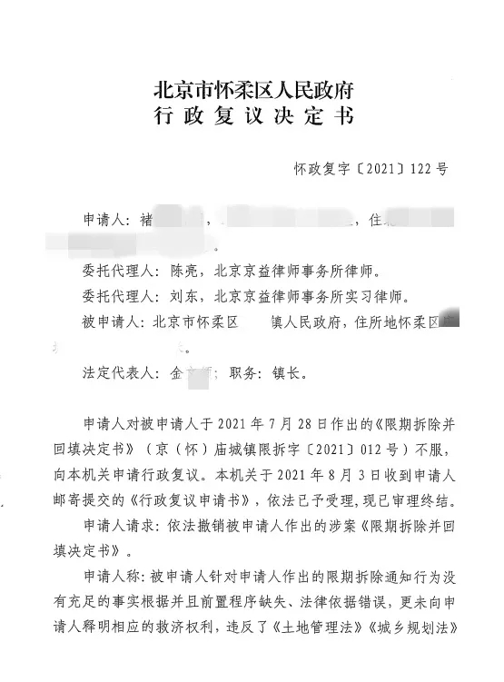 在律师阅卷后认为,镇政府所作出的限拆决定存在认定事实不清,证据不足,前置程序缺失等错误。针对于限拆通知应当通过行政复议程序进行撤销。