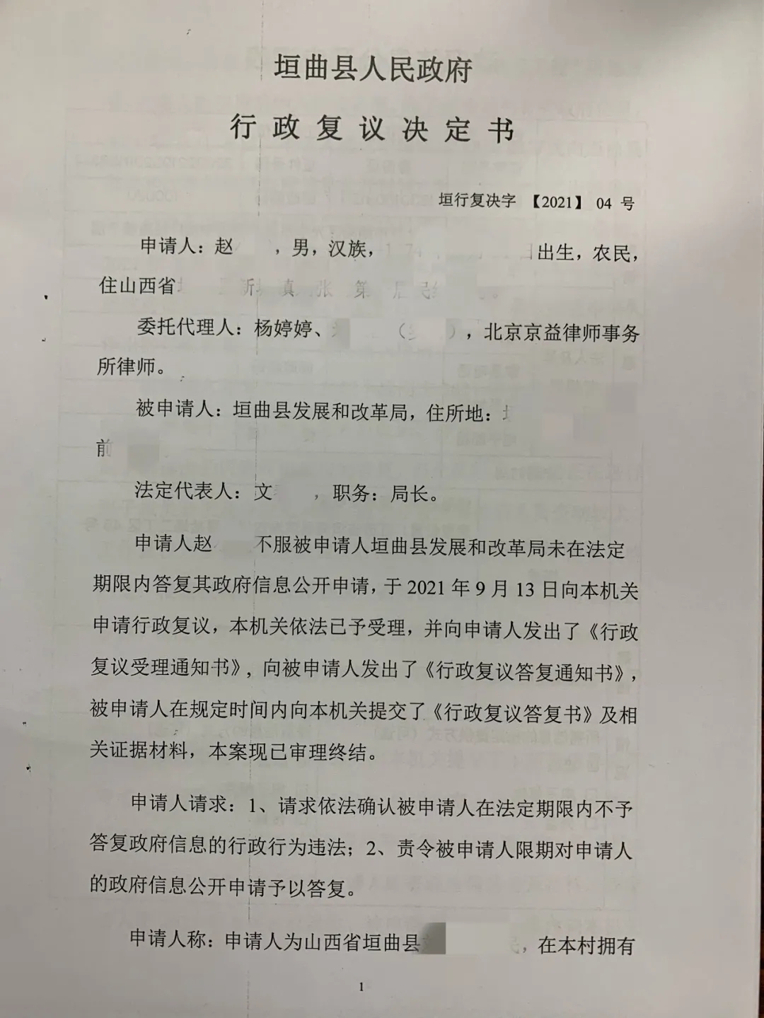 确认被申请人垣曲县发展和改革局在法定期限内不予答复政府信息的行政行为违法。