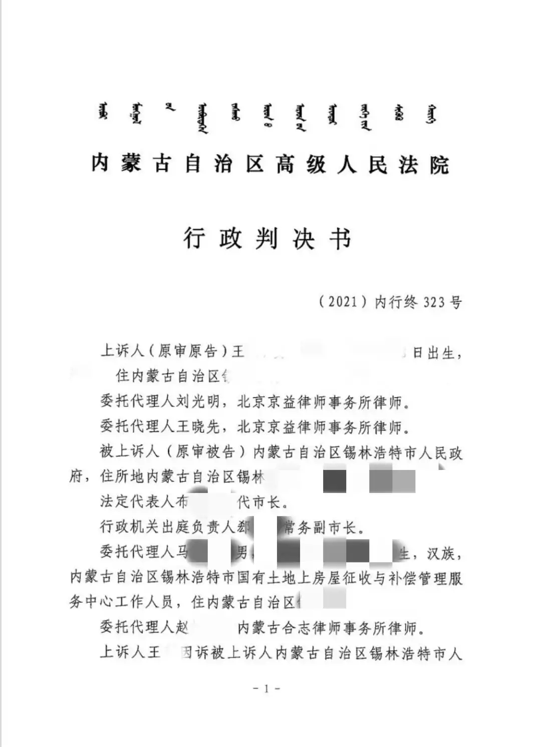 【胜诉公告】补偿标准不合理,判决重新做出征收补偿决定!