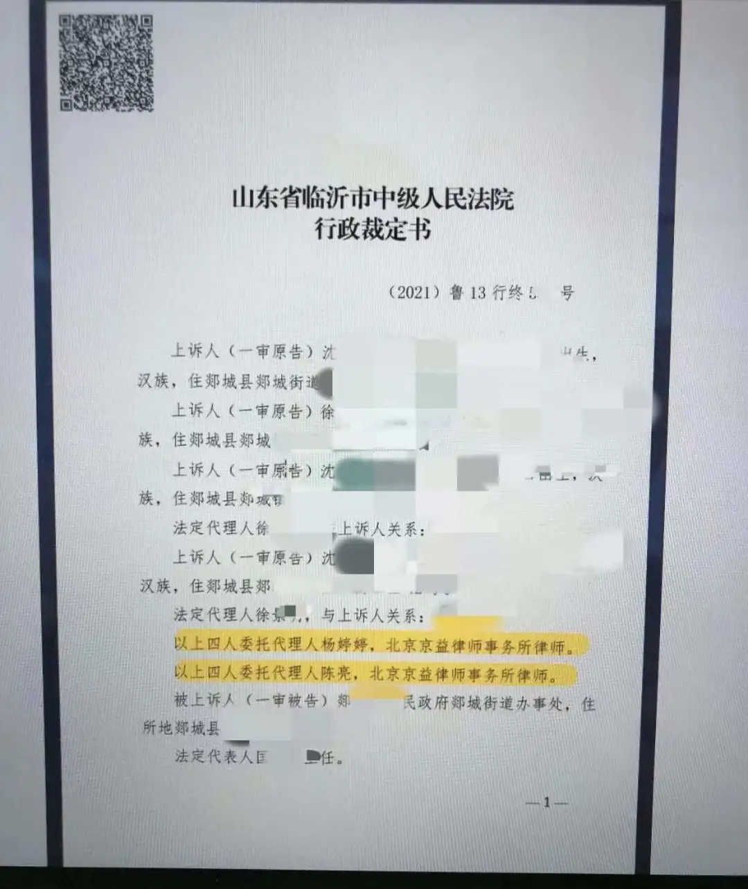 上诉人沈先生、徐女士等四人因与被上诉人郯城县人民政府郯城街道办事处行政赔偿一案,不服山东省临沂市罗庄区人民法院(2020)鲁1311行初79号行政判决,遂委托北京京益律师事务所提起上诉。