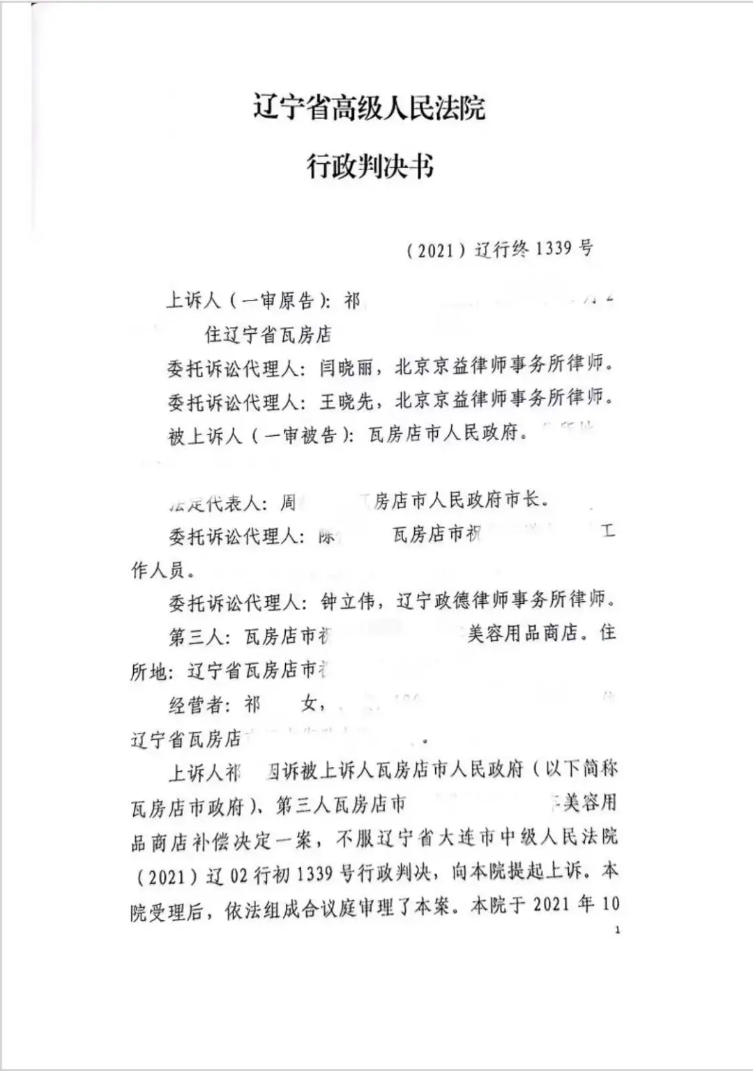 祁X系辽宁省瓦房店市XX街XX居民,在此处拥有合法房屋院落进行居住并从事生产经营活动,因瓦房店市公安局原看守所北侧棚户项目建设的需要,祁X房屋院落被纳入征收范围内。2020年9月17日祁X签收瓦房店市政府作出的瓦政房补决字[2016]1-1号《补偿决定》。