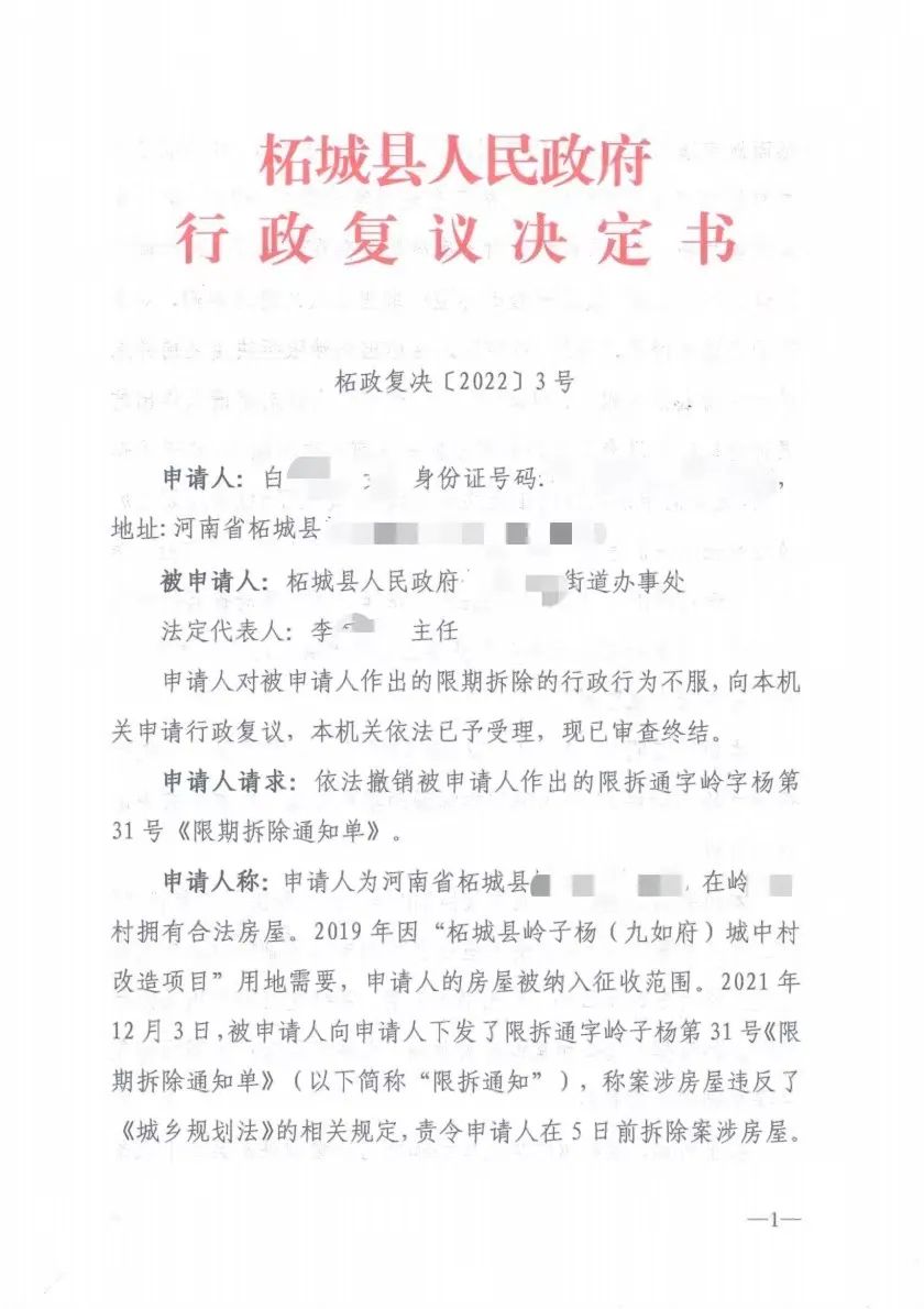 【胜诉公告】行政复议助推撤销,限拆通知不能随便发!