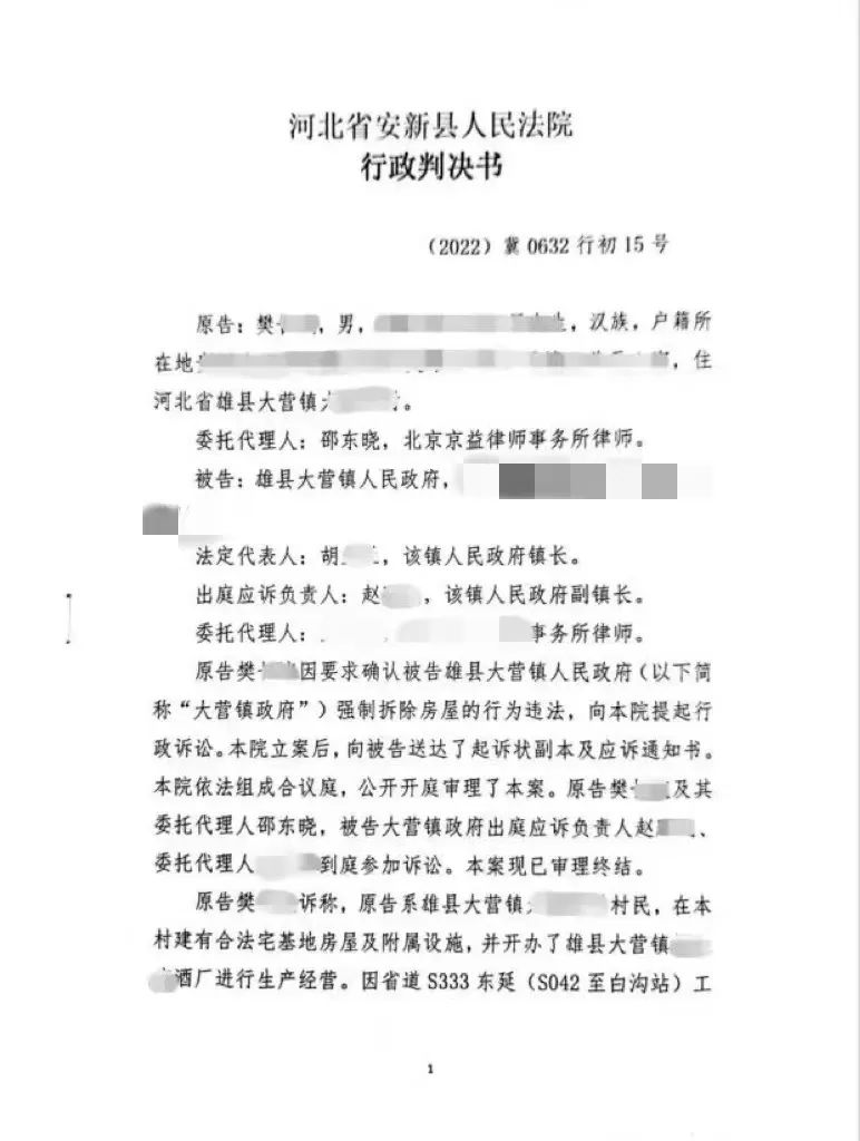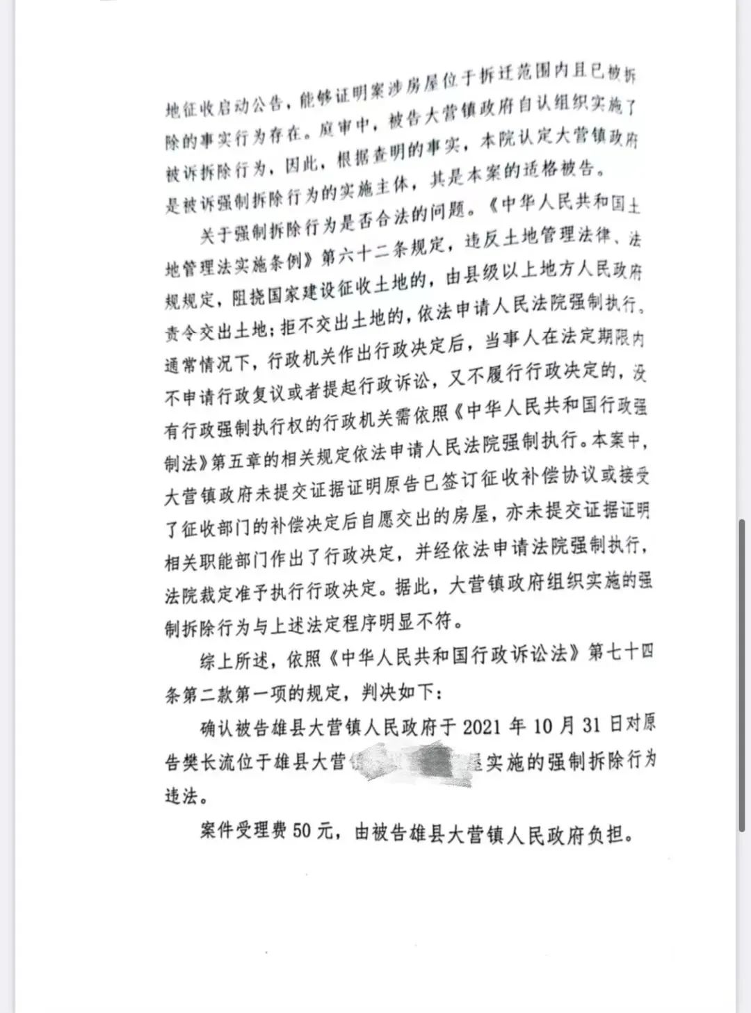 【胜诉公告】未签补偿协议就拆房子,确认违法!