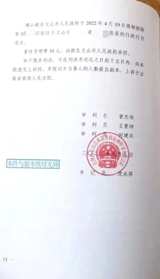 确认被告文山市政府强制拆除原告文山市XX街道XX社区居民委员会第四经济小组房屋的行政行为违法。