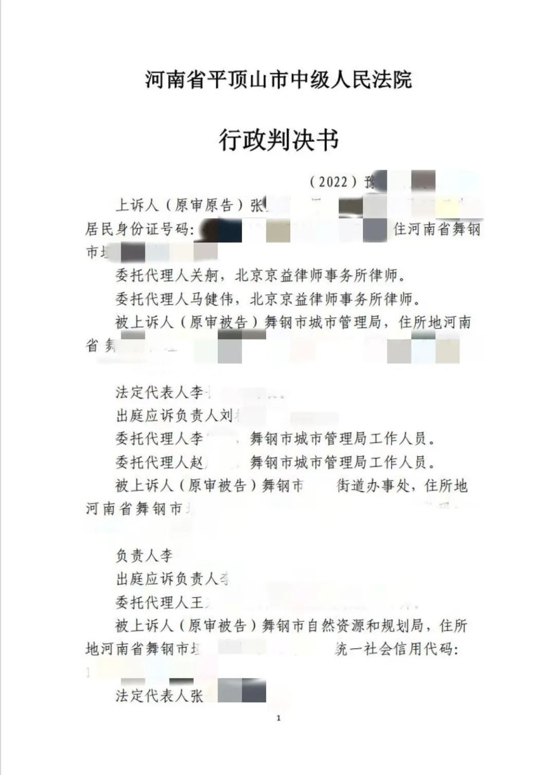 舞钢市XX街道办事处、舞钢市城市管理行政执法局、舞钢市自然资源和规划局