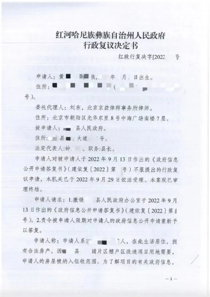 二位律师查阅案件材料后,认为,所申请的相关房屋征收文件属于应当公开的政府信息,县政府在答复中未依法全面公开,属于行政不作为,遂向红河州政府申请行政复议,申请撤销县政府答复,责令县政府重新予以公开相关政府信息。