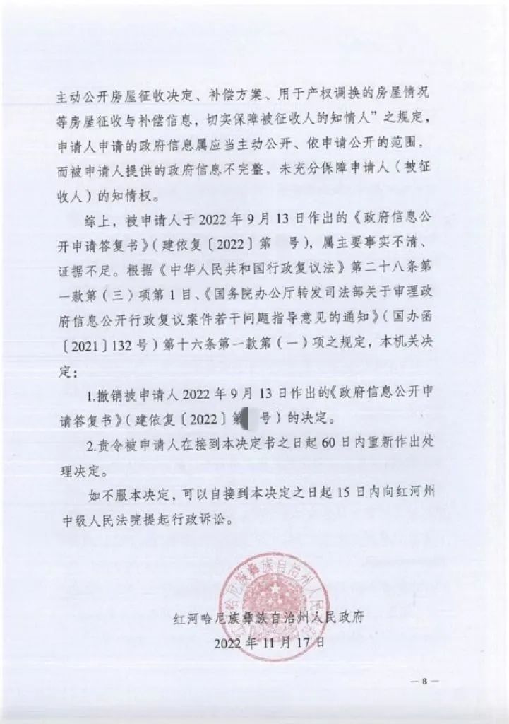 【胜诉公告】涉及房屋征收的政府信息应当予以全面公开