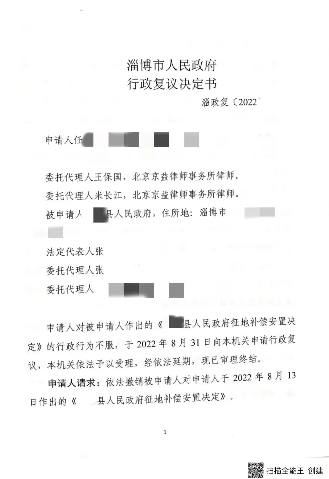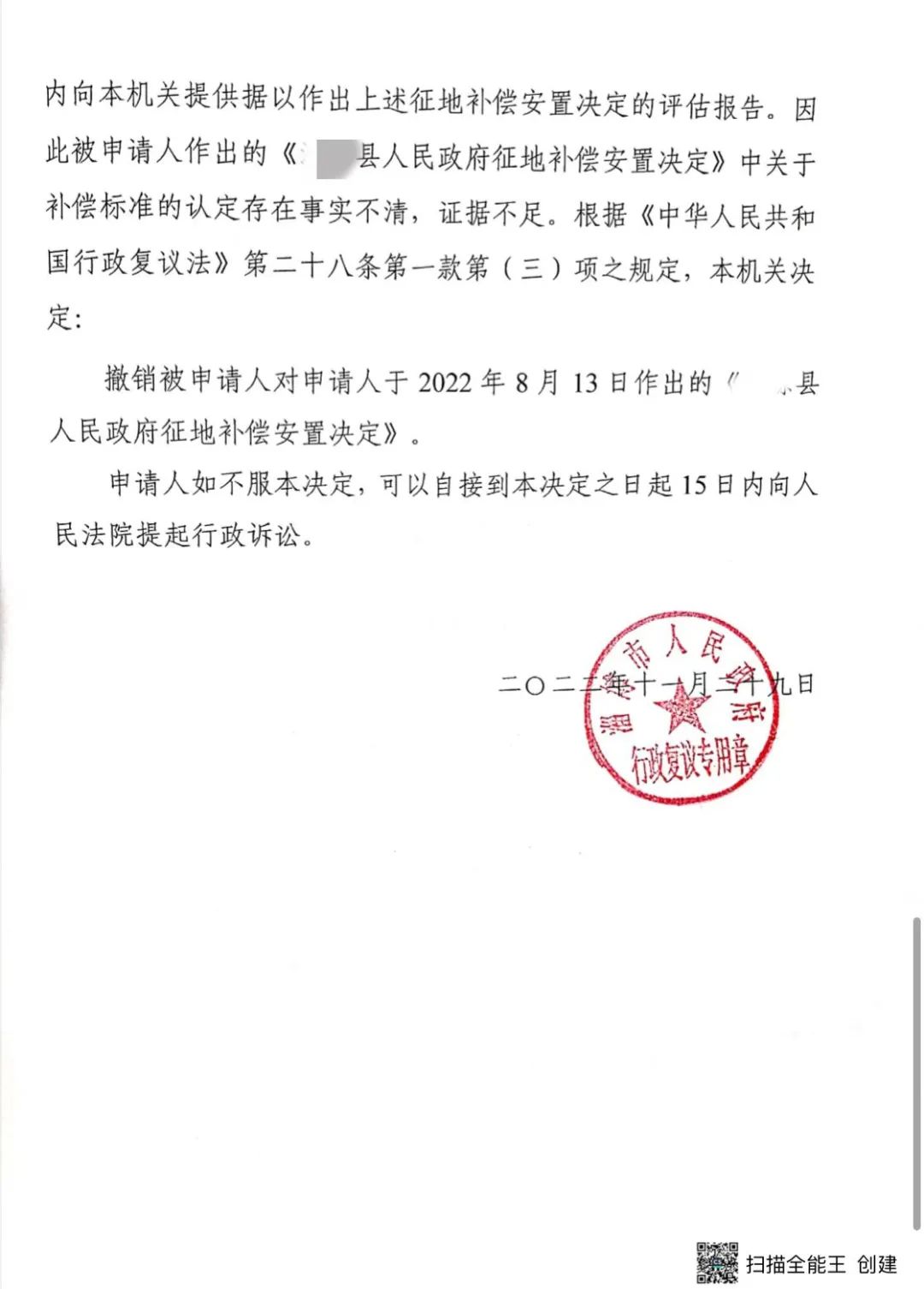 【胜诉公告】征地补偿安置决定违法,行政复议助推撤销!