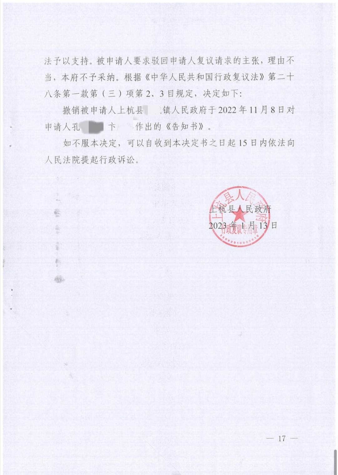 【胜诉公告】未履行前置程序就作出《告知书》,行政复议依法撤消