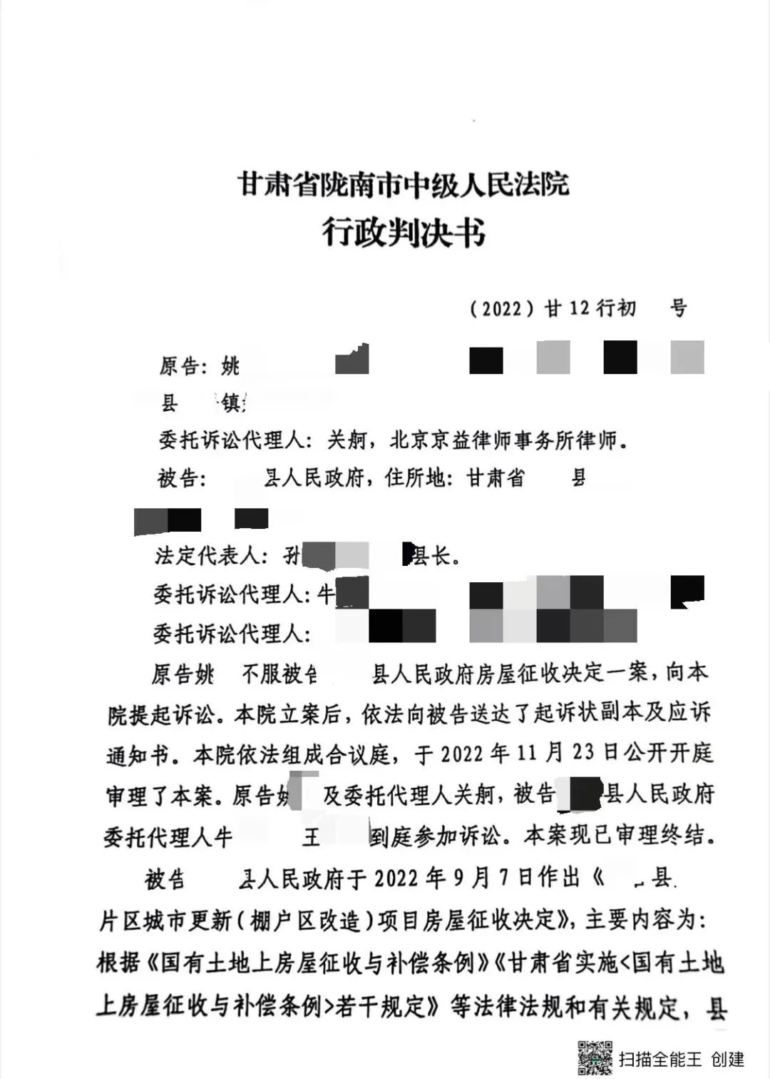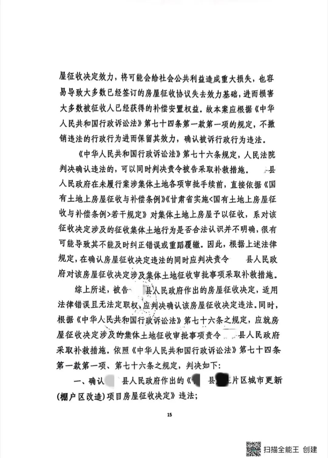 【胜诉公告】征收决定违反法律规定,行政诉讼确认违法!