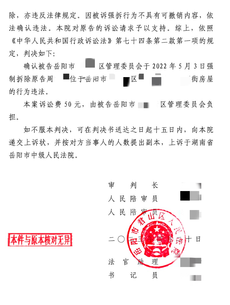 【胜诉公告】违建危房不按程序认定,直接强拆确认违法!