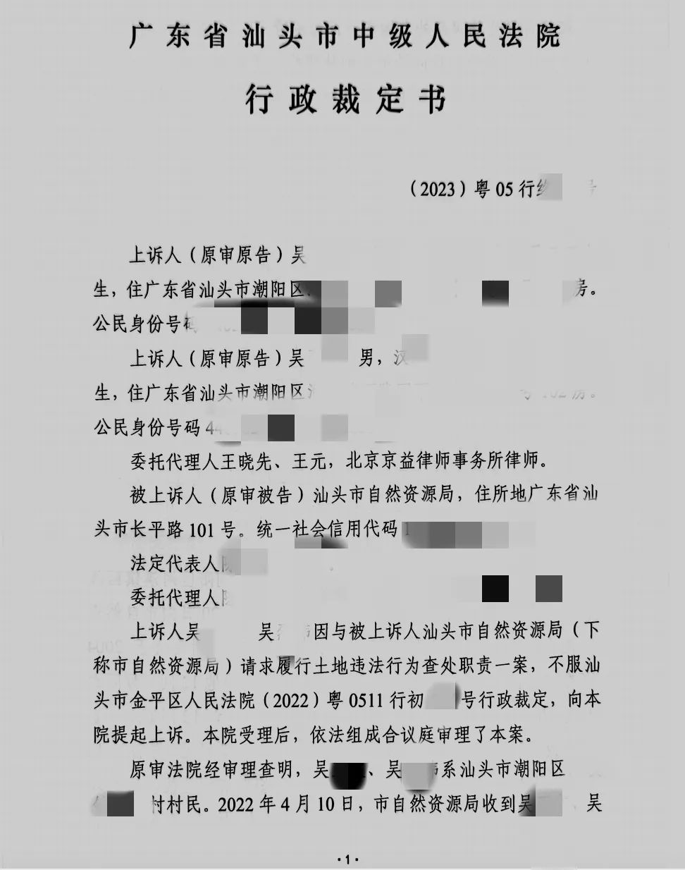 【胜诉公告】自然资源部门未履行土地违法查处职责,公民有权提起