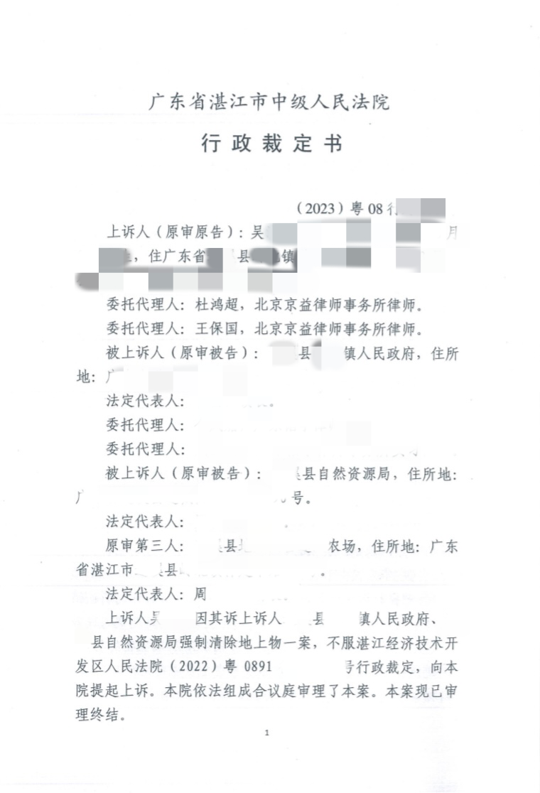 【胜诉公告】借农场之手行强制清表之实,二审裁定继续审理!