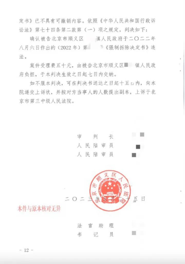【胜诉公告】前后强拆文书之间时间间隔极短,确认违法!