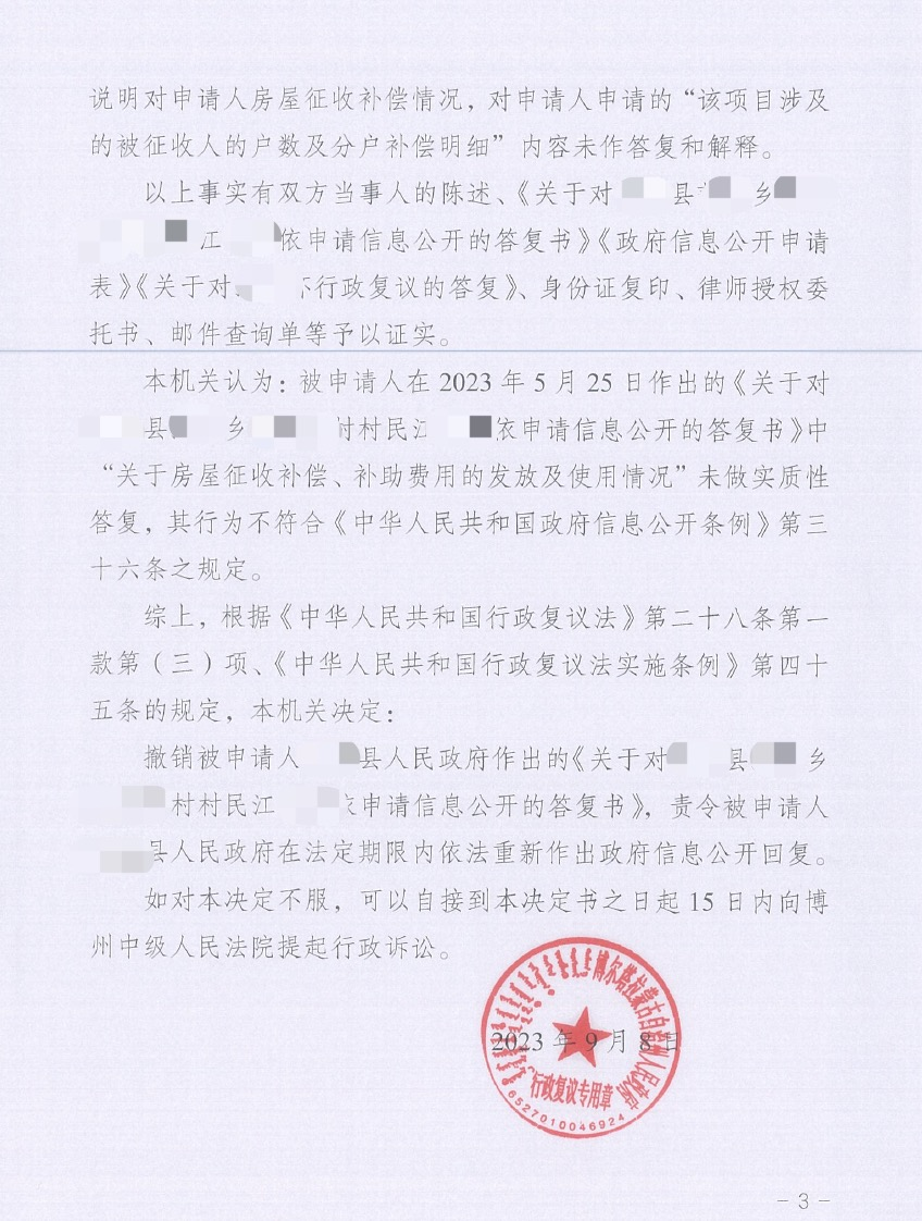 【胜诉公告】房屋征收补偿、补助费用的发放情况,应依法公开!