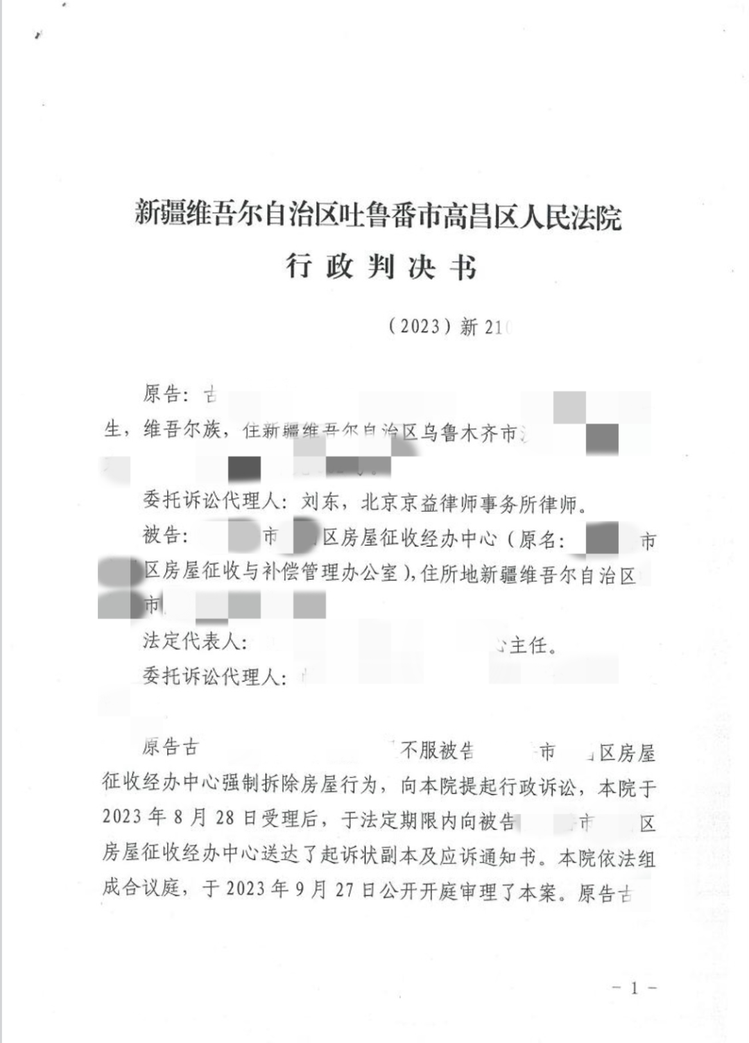 古XX在新疆XX市XX区XX乡拥有宅基地房屋。因护城河片区棚户区改造建设项目的需要,古XX宅基地房屋被划入征收范围内。2021年10月12日,相关单位组织人员机械将古XX房屋及设施全部拆除。事后经原告调查取证,才得知组织实施强制拆除的主体系XX市XX区房屋征收经办中心。古XX为维护自身合法权益,遂委托北京京益律师事务所-德凯征地拆迁律师团开展法律工作。