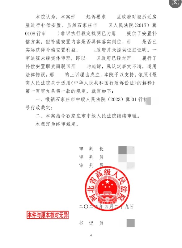撤销石家庄市中级人民法院(2023)冀 01 行初 XX号行政裁定;指令石家庄市中级人民法院继续审理。