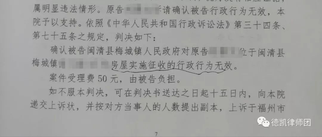 福建省胜诉案例:德凯律师重拳出击确认乡镇政府征收房屋行为无效