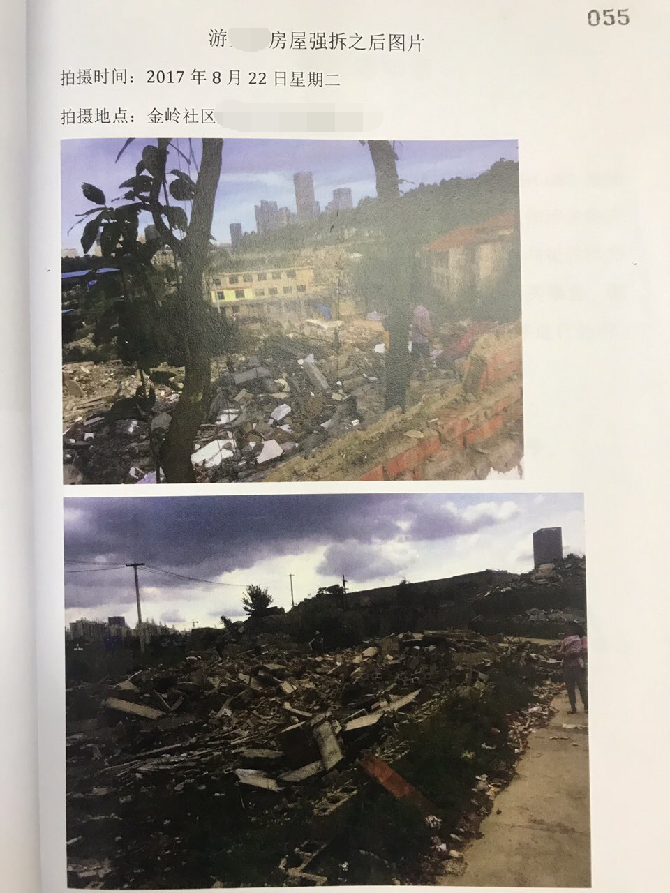 第三,其实也是反复强调过的收集、保存好证据的问题。在本案中,游女士对于强拆前、强拆现场、强拆后房屋的状况都以照片的形式充分地记录下来。虽然现场照片并没有直接反映强拆者为谁,但是在和当地政府谈判的时候录下了当地干部承认强拆是政府所为的录音。
