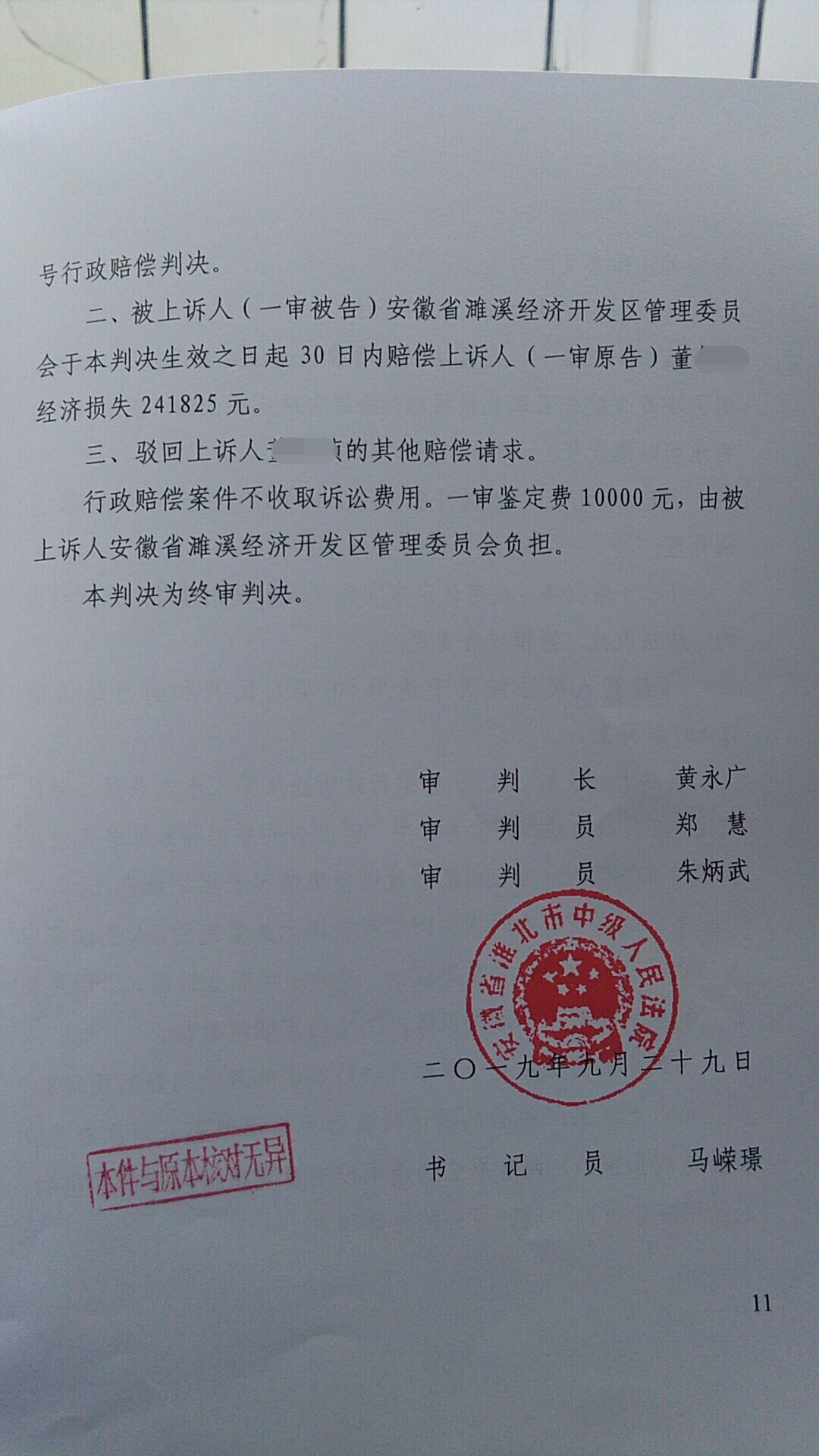 被上诉人(一审被告)安徽省濉溪经济开发区管理委员会于本判决生效之日起30日内赔偿上诉人(一审原告)董某经济损失241825元。