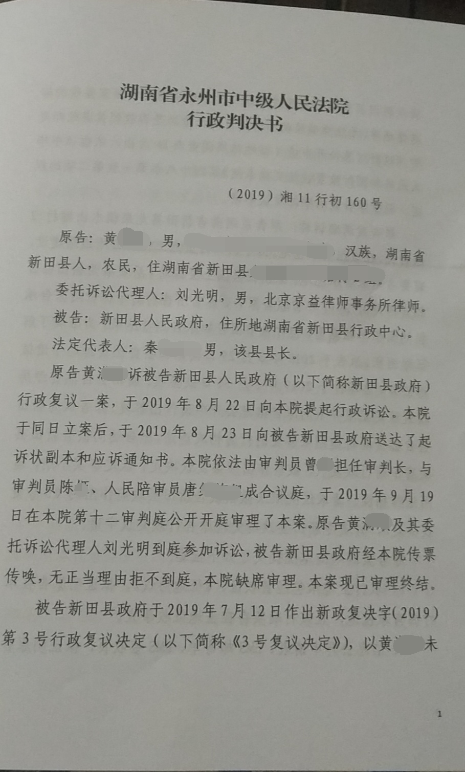 为了捍卫自己的合法权益,黄某联系到了北京京益律师事务所德凯征地拆迁律师团,并将维权事宜委托给了刘光明律师、闫晓丽律师。律师认为新田县自然资源局逾期未答复的行为构成违法,原告遂向被告新田县政府申请行政复议,被告作出的涉案复议决定,认定事实不清,适用法律错误。