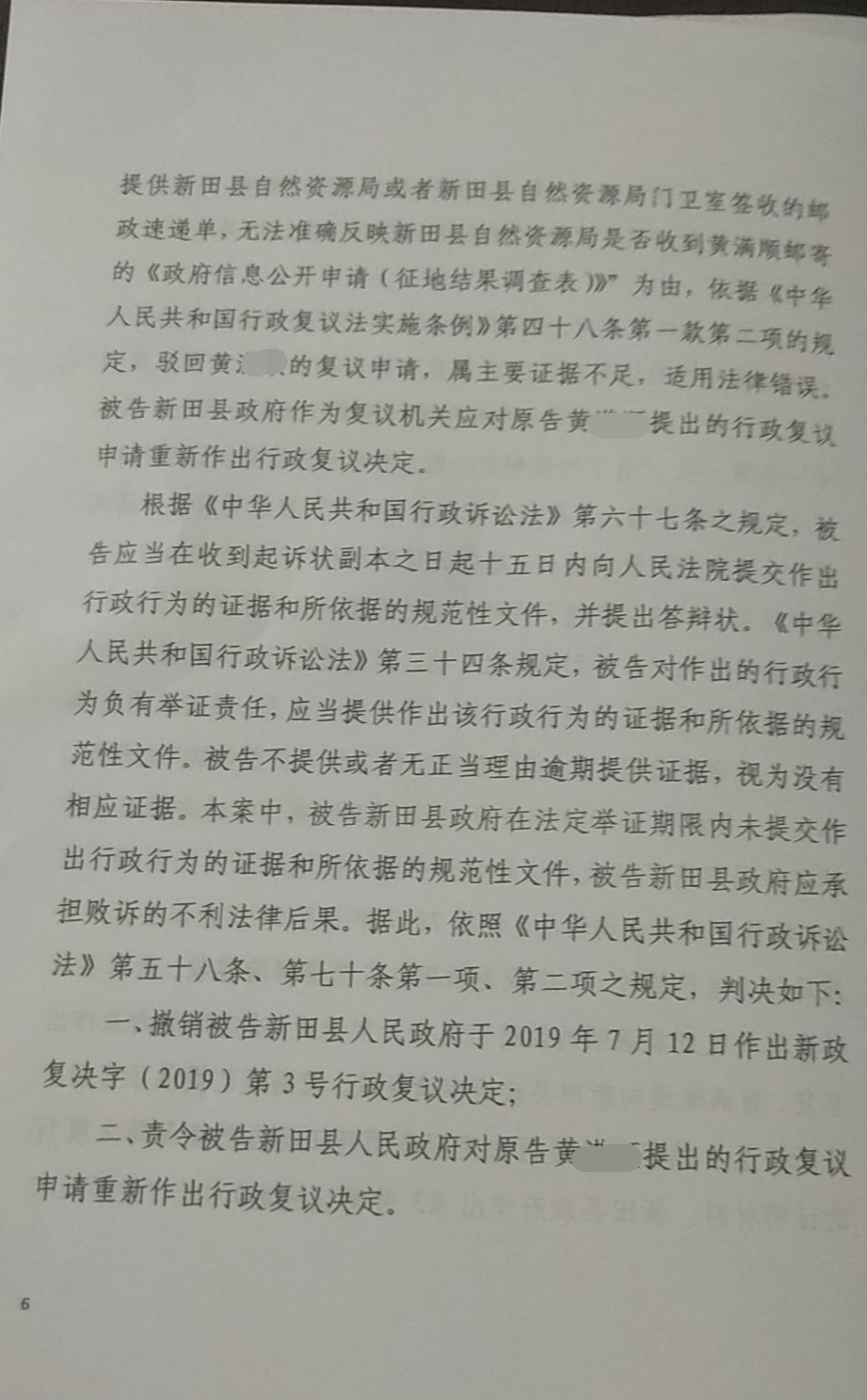 原告黄某遂向新田县政府申请行政复议,但被告新田县人民政府以黄某未提供新田县自然资源局签收的邮政速递单为由驳回原告黄某的复议申请。