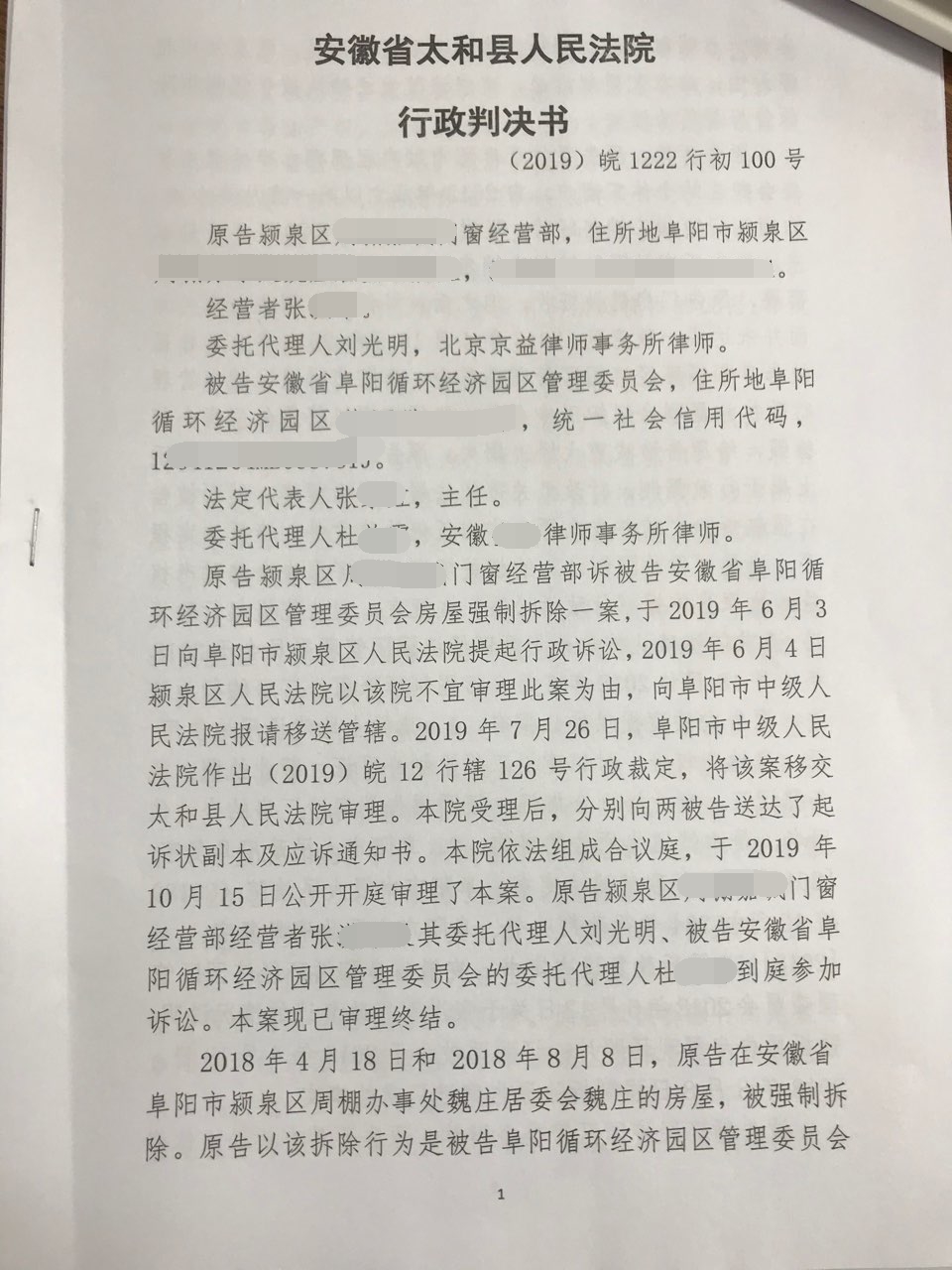 因此,刘光明律师助力张某依据《行政诉讼法》之规定,向法院提起行政诉讼,请求依法确认被告阜阳循环经济园区管理委员会的强拆行为违法。