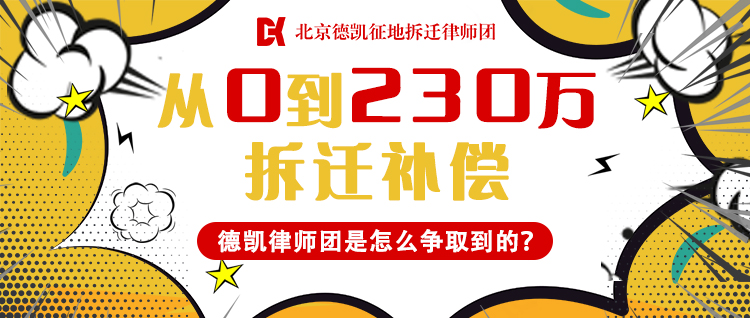 德凯律师团的专业性让补偿款从0升至230万,这也让当事人超乎预料,德凯助力确定不是在做梦!实打实的拆迁案例,稳打稳的拆迁补偿,敬请期待明日的【告赢政府拿补偿】第三弹!又会有什么样的惊喜呢?