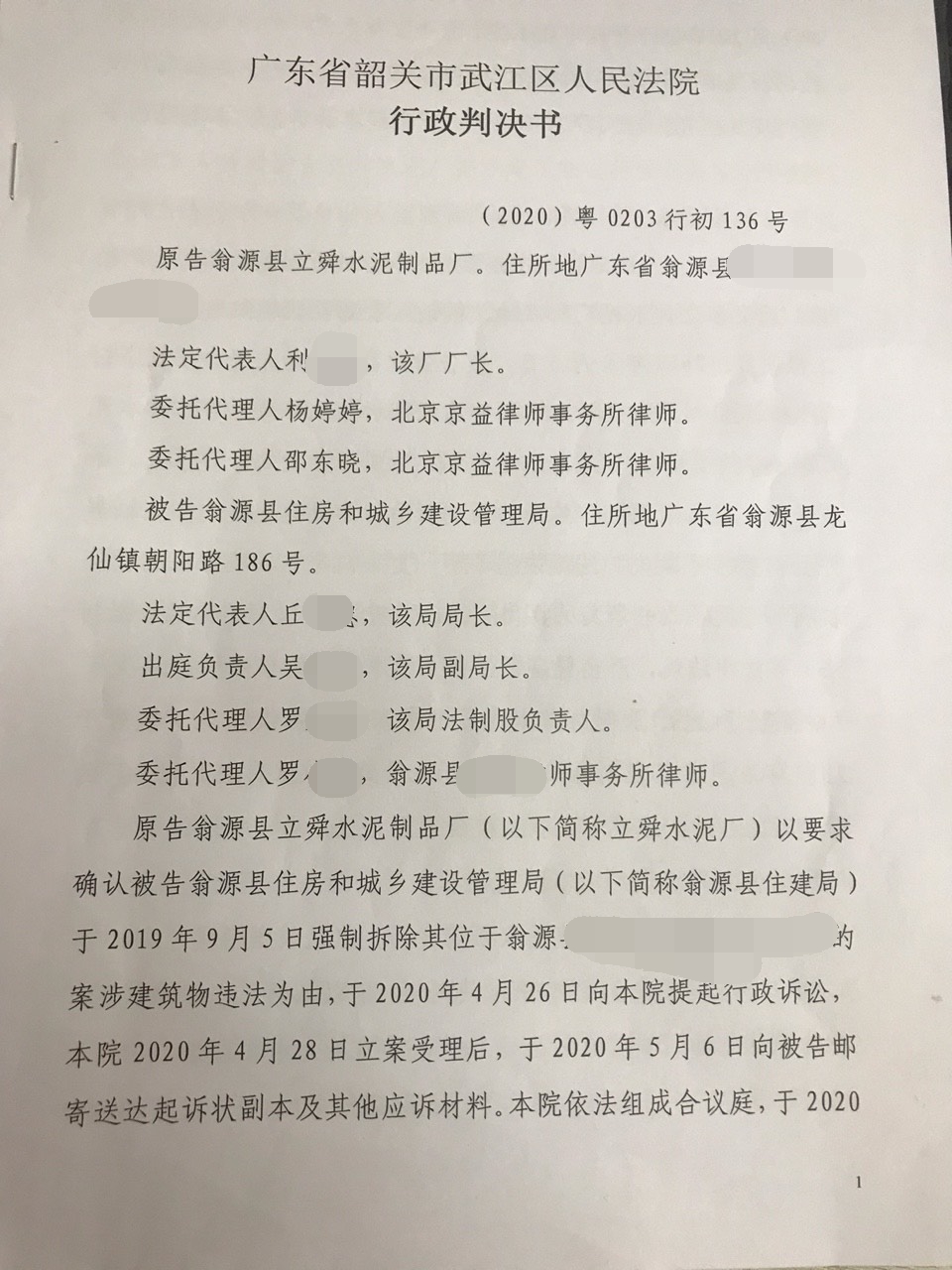 利女士是广东韶关市人。她在当地经营一家水泥厂,迄今为止已经经营十几年之久了。2019年5月,他所经营的水泥厂收到城管发来的一份整改通知书,称其未经批准就在街道两侧堆放物料,限期三天予以清理,如逾期不清理,则由城管强制清理并予以罚款。此项通知并未涉及到水泥厂本身的建筑问题。因此水泥厂仅仅是简单地对于露天堆放进行了一番清理。谁想到2019年8月,县住建局向水泥厂下达了《拆除通知书》,称水泥厂未经允许就建设临时建筑。属违法行为.到九月就实施强拆,造成整个水泥厂的生产设施被夷为平地,大量物料被彻底损毁,损失相当惨重。在上访无果的情况下,利女士选择委托我们德凯律师团,维护自身正当权益。