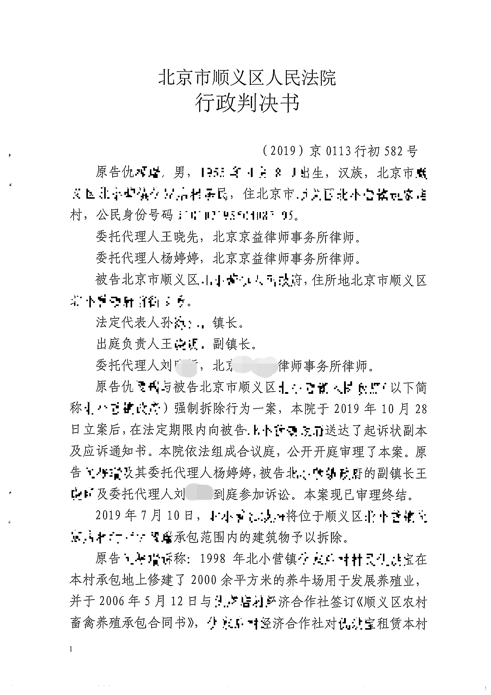 仇先生是北京顺义区人。2007年仇先生经村委会同意,与他人签订买卖合同,将1998年在其承包地上修建的2000余平方米养牛场买入,并一直从事合法养殖活动。2019年7月10日,当地镇政府组织人员、设备对养牛场及附属设施实施了强制拆除,给仇先生造成了重大财产损失的同事,在当地造成恶劣影响。养牛场拆除后,仇先生随即选择委托我们德凯律师团,维护自身正当权益。