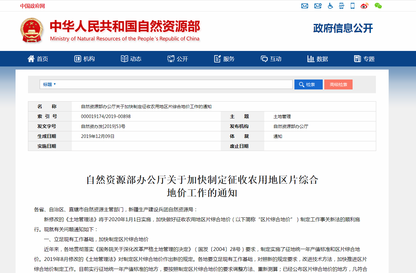 2019年末中华人民共和国自然资源部办公厅就发表了关于加快制定征收农用地区片综合地价工作的通知。要各地要立足现有工作基础,对照新的规定要求,改进技术方法,加快推进区片综合地价制定工作。目前实行征地统一年产值标准的地方,要按照制定区片综合地价的要求调整方法、重新测算;已经公布区片综合地价的地方,凡符合新法规定的,可以继续执行,不符合新法规定的,要按照新法规定的区片综合地价内涵调整完善,并重新公布后继续执行。区片综合地价制定过程中,要做好前后政策衔接,实现征地补偿标准平稳有序过渡。
