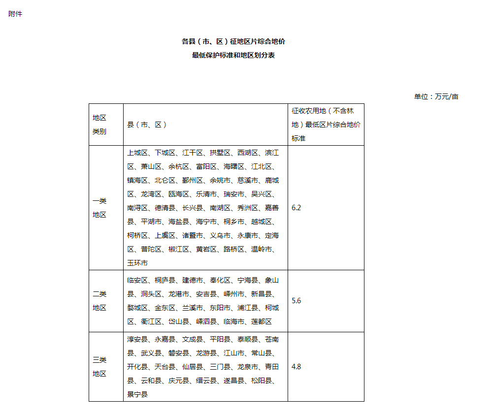 附件:各县(市、区)征地区片综合地价最低保护标准和地区划分表