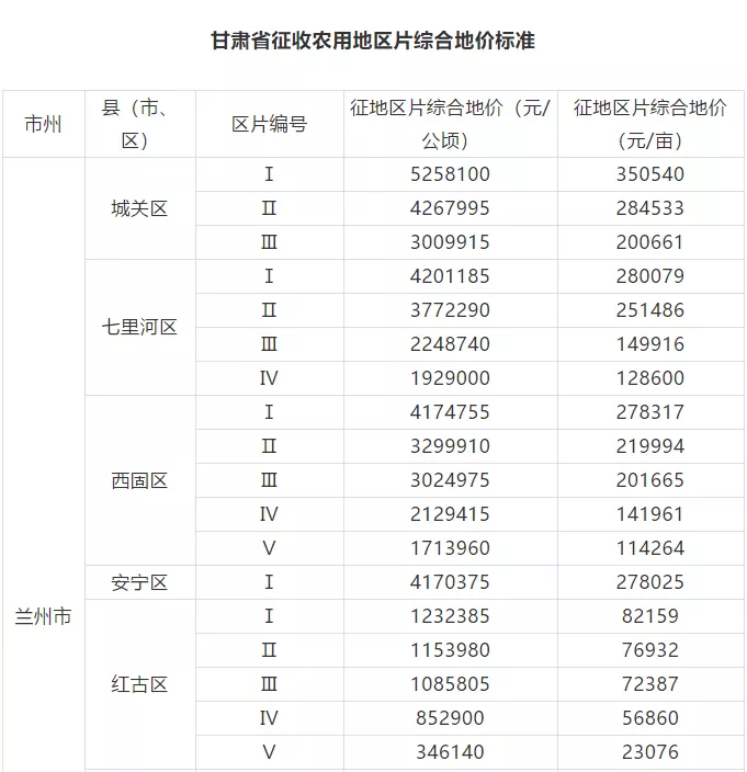 为切实做好征收农用地区片综合地价标准实施工作,依法保障被征地农民合法权益,根据《中华人民共和国土地管理法》有关规定,现将《甘肃省征收农用地区片综合地价标准》予以公布,并将有关事宜通知如下: