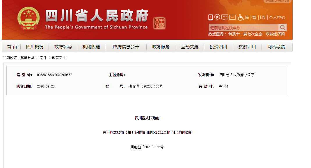 甘肃省人民政府关于公布全省征收农用地区片综合地价标准的通知。