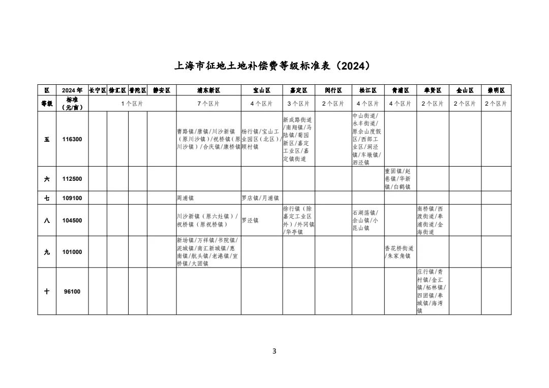 关于印发《上海市征收集体土地补偿标准(2024)》的通知
