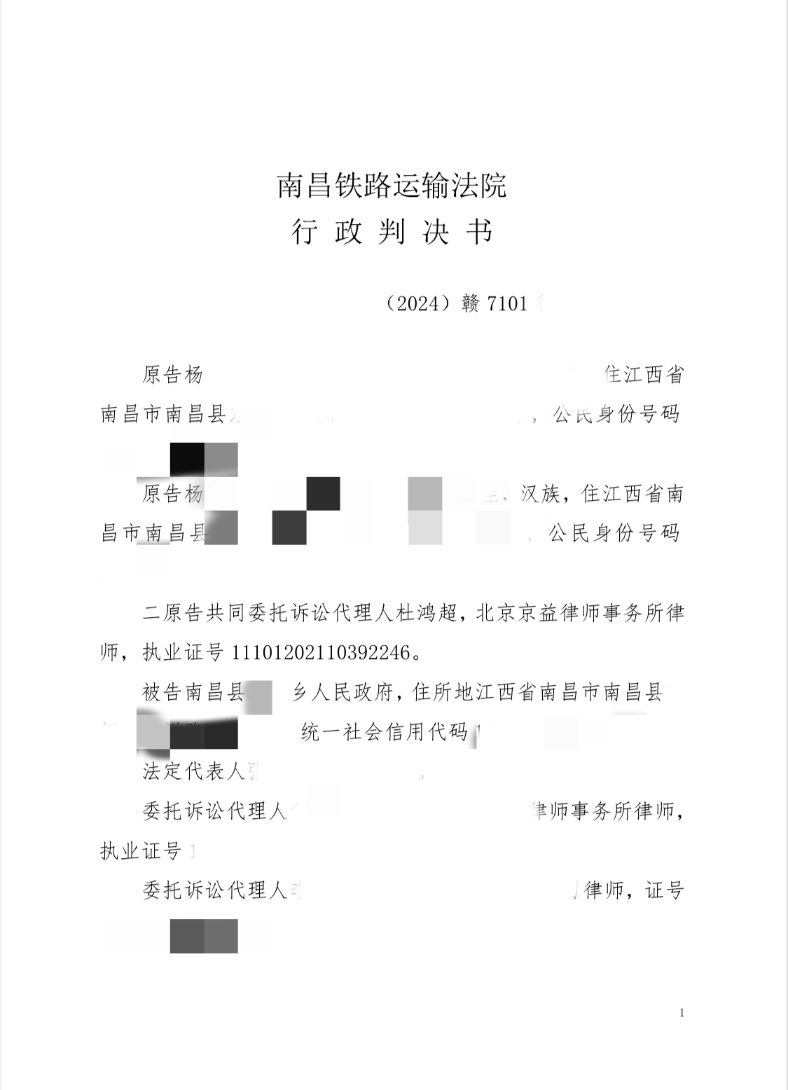 北京京益律师事务所接受杨某二人委托后,遂指派杜鸿超律师协助二人开展法律工作。杜律师在全面梳理案情,准备证据材料后,遂依法提起行政诉讼。