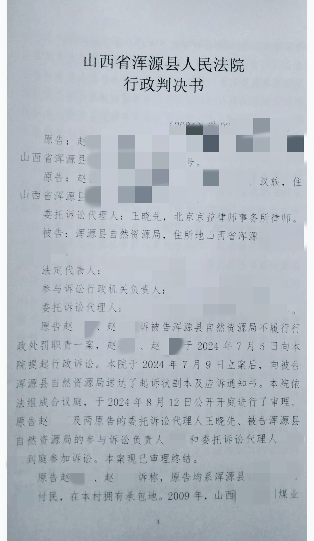 原告二人系浑源县XX村村民,在本村拥有承包地,2009年山西浑源XX煤业有限公司分别与原告和浑源县XX村村民委员会签订《XX村征地补偿协议》,通过以租代征方式占用原告案涉承包地进行露天煤矿开采,但其补偿方式和标准严重违法且造成案涉承包地被破坏。