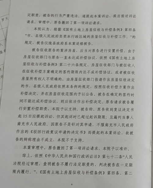 经过公证的审理,四川省南充市中级人民法院认为,根据《国有土地上房屋征收与补偿条例》第四条“市、县级人民政府负责本行政区域的房屋征收与补偿工作,”的规定,被告仪陇县政府系本案适格被告。