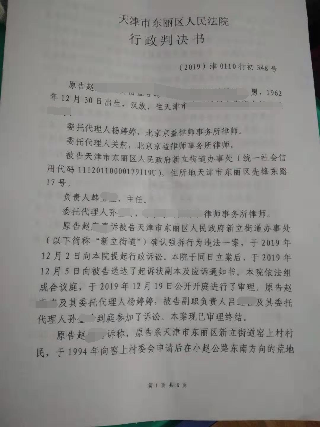 1、依法确认被告于2018年11月27日强制拆除原告位于天津市东丽区新立街道窑上村某号房屋行政行为违法;