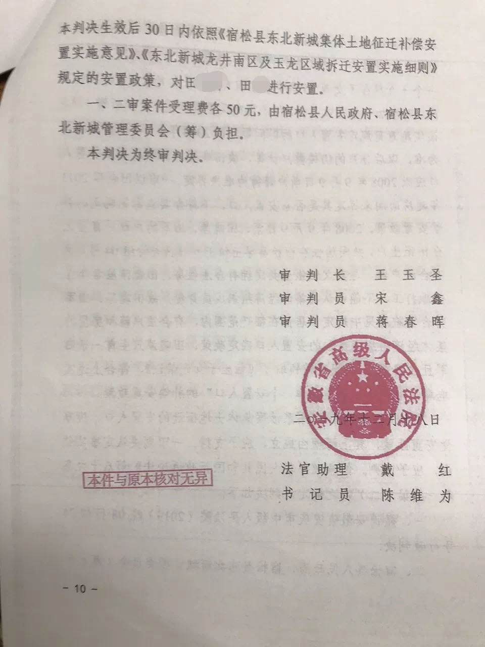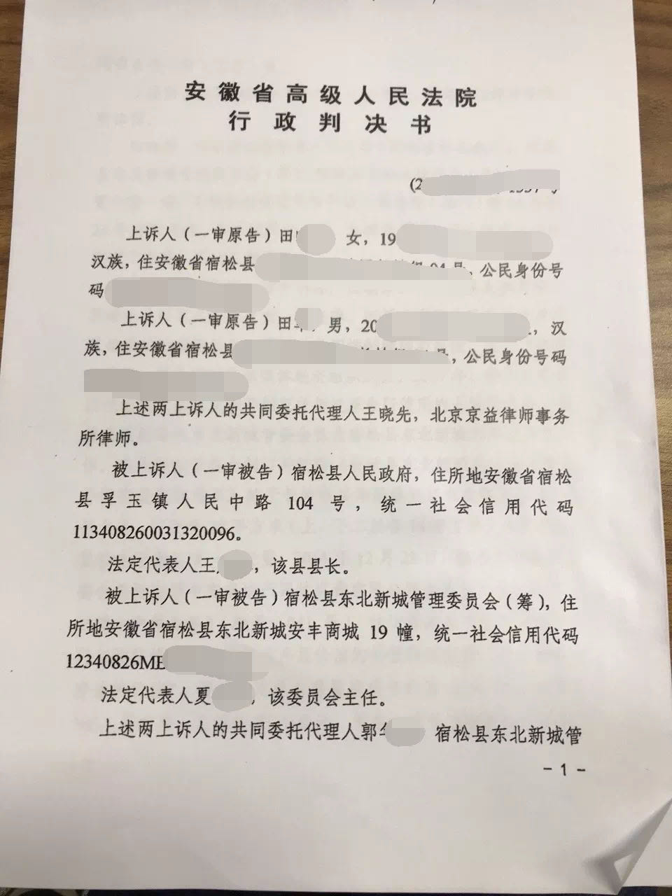 二审全盘推翻了一审的判决,田女士及其独生儿子可以据此向政府要求交付280平米的房屋,我方胜诉!